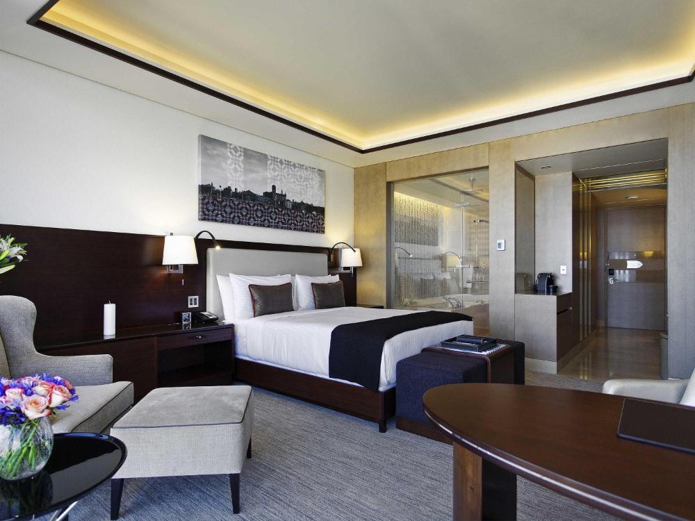 Moderne, climatizzate e impreziosite da arredi contemporanei, le camere del Fairmont presentano una TV a schermo piatto, una spaziosa scrivania, un minibar ben fornito, finestre panoramiche e un bagno in marmo completo di bidet e parete in vetro.