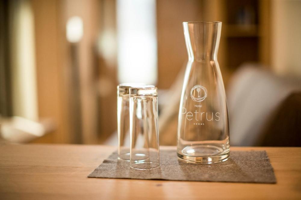 Tutte le camere dell'Hotel Petrus dispongono di balcone con vista sulle montagne, morbida moquette, bagno privato con doccia e TV LCD con canali satellitari.