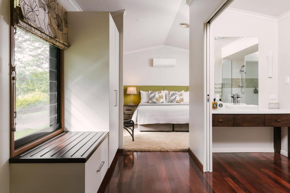 Ubicato a Maleny, a 16 km da Australia Zoo, Spicers Tamarind Retreat propone una piscina all'aperto, un parcheggio privato gratuito, un giardino e un ristorante. Con un bar, l'hotel a 4 stelle presenta camere climatizzate con WiFi gratuito e bagno privato. Questo hotel offre una vasca idromassaggio e il servizo in camera.