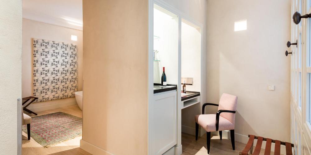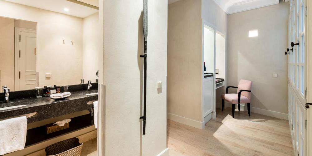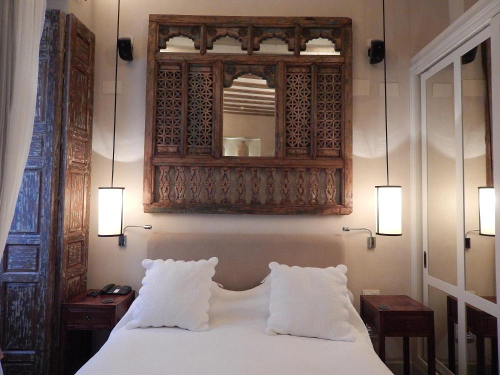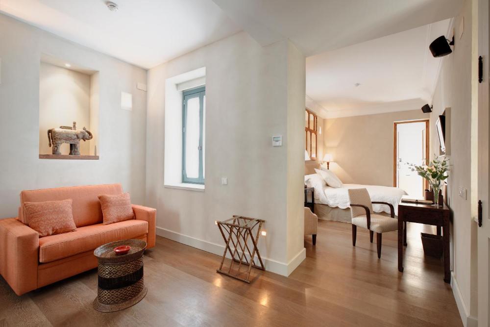 Le lussuose camere del Corral del Rey, arredate con eleganza, presentano pavimenti in parquet e tonalità tenui, e sono provviste di lettore DVD e bagno privato con doccia a effetto pioggia.