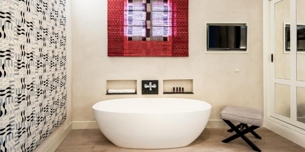 Lo splendido edificio vanta un sistema di illuminazione all'avanguardia e comprende un atrio con patio, colonne di marmo in stile romano e travi di legno intarsiato. Troverete inoltre una terrazza all'ultimo piano con vasca immersione ad acqua fredda e viste panoramiche sulla città.
