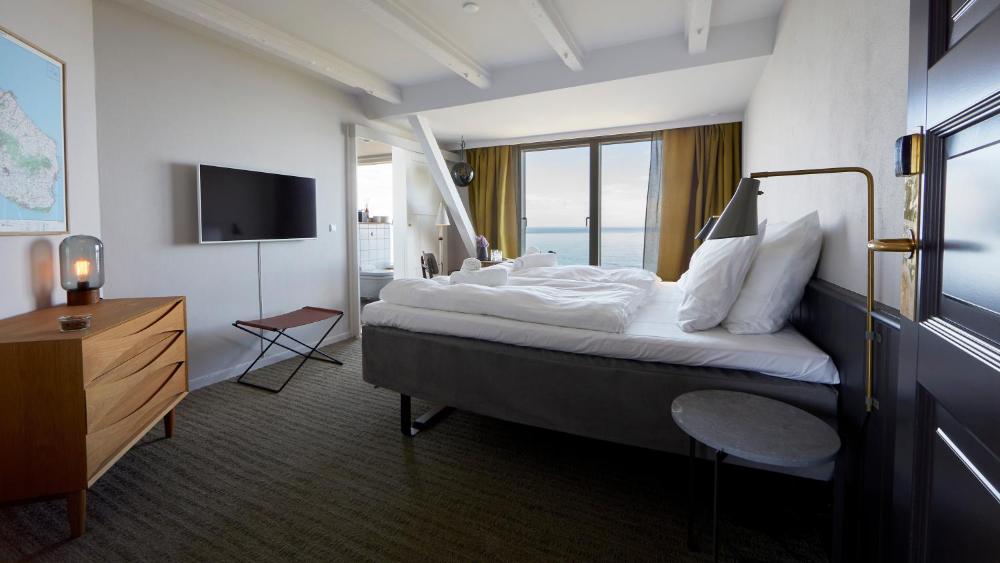 Elke kamer biedt uitzicht op zee, moderne Scandinavische meubels en een zithoek. De eigen badkamer is uitgerust met een douche.