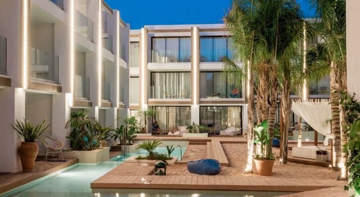 Het Aguas de Ibiza Grand Luxe Hotel - Small Luxury Hotel of the World is een luxe designhotel met een gratis spa en een buitenzwembad. De bar met terras op het dak is alleen voor volwassenen en biedt ...