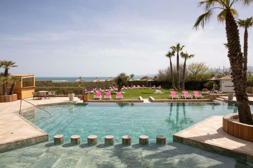 Grand Hôtel Les Flamants Roses ligt aan het strand in Canet en biedt een seizoensgebonden buitenbad, een binnenzwembad en een kinderspeelplaats. Het hotel heeft een terras en een spacentrum, en de gasten kunnen genieten van een maaltijd in het restaurant. WiFi en privéparkeren zijn gratis.