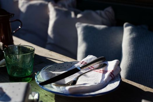 Alle borden, glazen, bestek en andere tafelbenodigdheden worden ontsmet