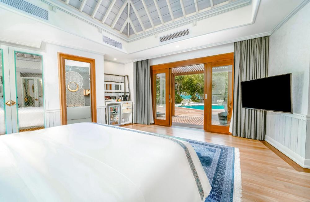- Access to the main swimming pool at Meeru Bar and Grill and the infinity pool at Sunset Pool Café, with sun loungers and/or cabanas