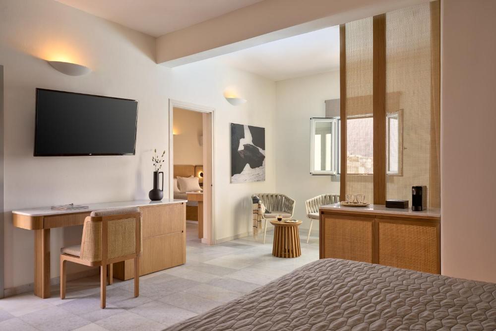 Tomatini, het gloednieuwe restaurant van het hotel, neemt gasten mee op reis naar de verschillende Cycladen met gerechten van de nabijgelegen eilanden. De Tomatini Bar serveert de langste lijst aan margarita's in Europa.