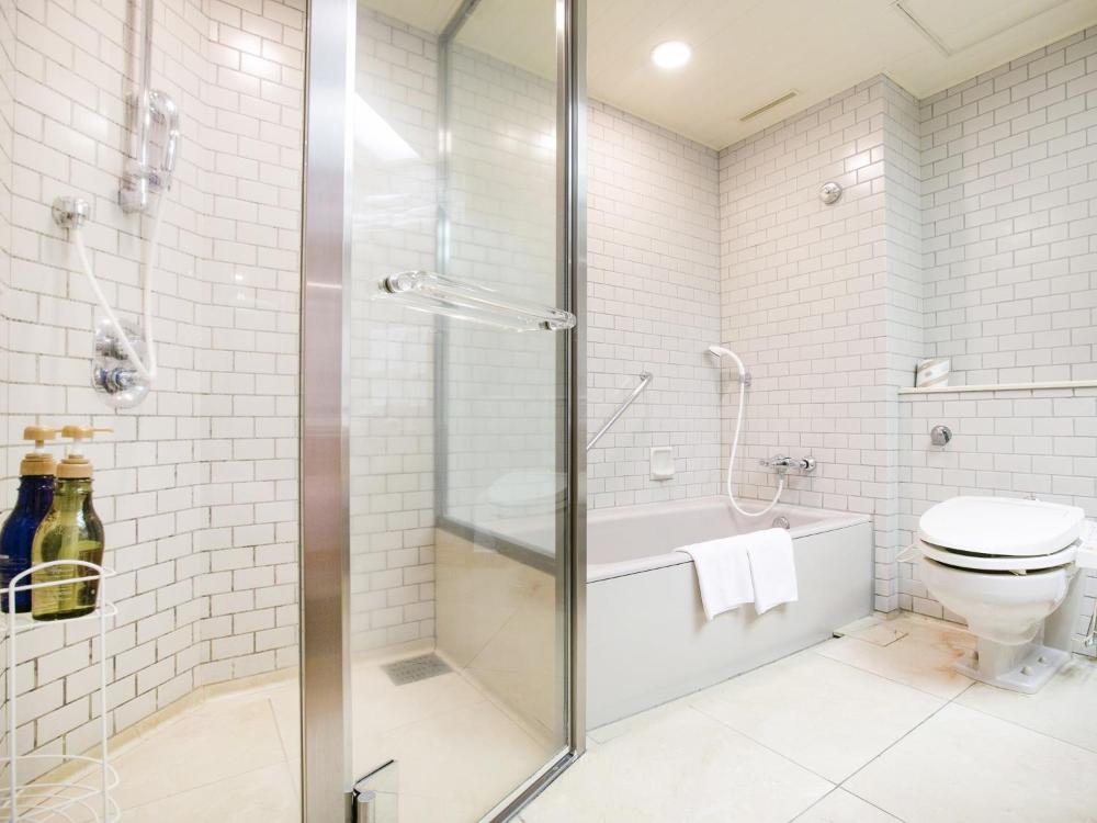 Bright rooms feature floor-to-ceiling windows, flat-screen TVs, and seating areas. They are equipped with an air purifier/humidifier, refrigerator, and one-piece nightwear (for both men and women). A variety of toiletries (one time use) are provided in the bathroom (no razors).