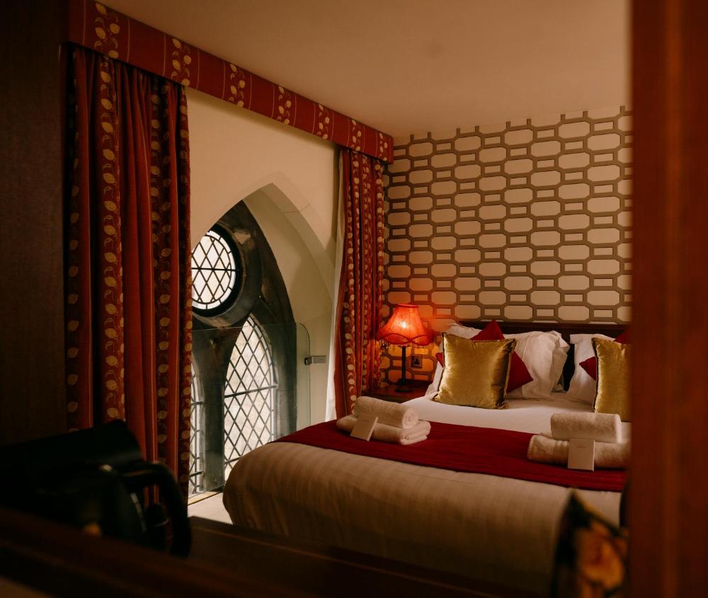 The Old Palace Lodge sits in the shadow of Lincoln Cathedral. It blends traditional features with modern amenities like flat-screen TVs.