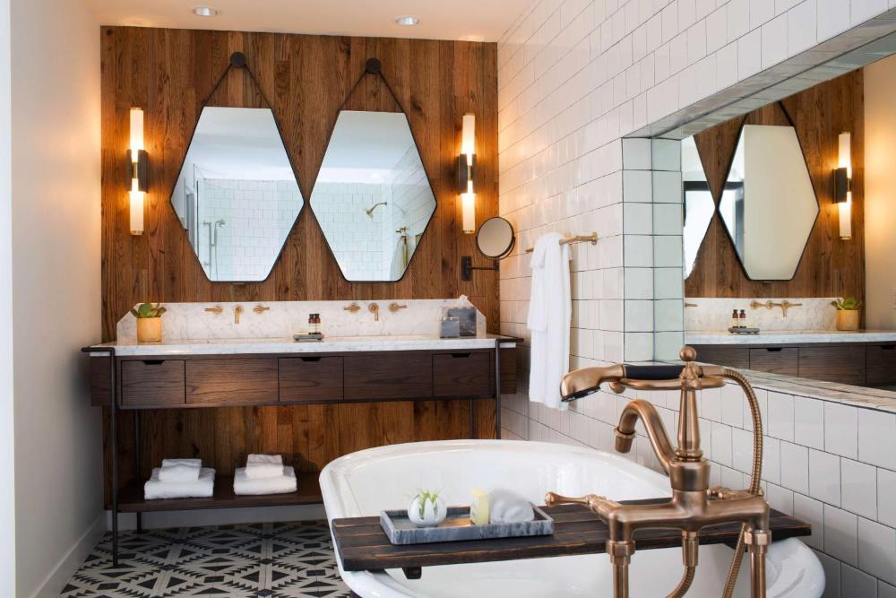 Dit boetiekhotel heeft een bar op het dak met een schilderachtig uitzicht op het centrum van Nashville. Het ligt in de wijk The Gulch in Nashville, Tennessee en biedt moderne kamers met gratis WiFi. Elke kamer van het Thompson Nashville, onderdeel van Hyatt, is voorzien van een flatscreen-tv, Bluetooth-luidsprekers en een minibar. De eigen badkamers hebben een inloopdouche met regenval en badartikelen. Bekroonde chef-koks creëren op zeevruchten gerichte zuidelijke gerechten voor ontbijt, lunch en diner in Marsh House. Gasten kunnen genieten van het uitzicht op de stad vanaf de bar op het dak van het hotel, waar 20 regionale bieren, ambachtelijke cocktails en een selectie wijnen worden geschonken. Killebrew biedt koffie-ontbijtbroodjes, gebak en 's middags grab-and-go' broodjes. Het hotel biedt binnen en buiten ruimte voor evenementen. Er zijn vergaderzalen beschikbaar voor zakelijke accommodaties. Ryman Auditorium en Country Music Hall of Fame and Museum liggen beide op minder dan 2 km van het hotel. Vanderbilt University ligt op 5 minuten rijden.