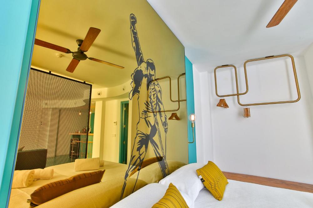 Dorado Ibiza - Adults Only ligt aan het strand en heeft een muzikaal en rock-'n-roll geïnspireerd thema, waardoor alle suites uniek zijn. Dorado Ibiza - Adults Only biedt suites die zijn ingericht met gouden en turquoise afwerkingen. Gasten hebben gratis WiFi, een Marshall geluidssysteem en een prachtig uitzicht op zee. Elke suite heeft een zithoek, een slaapkamer en een bar met een Marshall koelkast. De suites hebben ook airconditioning, een 42-inch flatscreen-tv met USB-poort, een kitchenette en een minibar. Er is ook een strijkijzer en koffie en thee. Er is een bar bij het zwembad, waar gasten kunnen genieten van een drankje bij het buitenzwembad. Strand- en zwembadhanddoeken worden aangeboden. Grote ligbedden en gratis handdoeken zijn inbegrepen. Dorado Ibiza heeft directe toegang tot het strand en een fantastisch uitzicht op de zee en Formentera. Dorado Ibiza - Adults Only ligt op 3 km van de luchthaven van Ibiza.