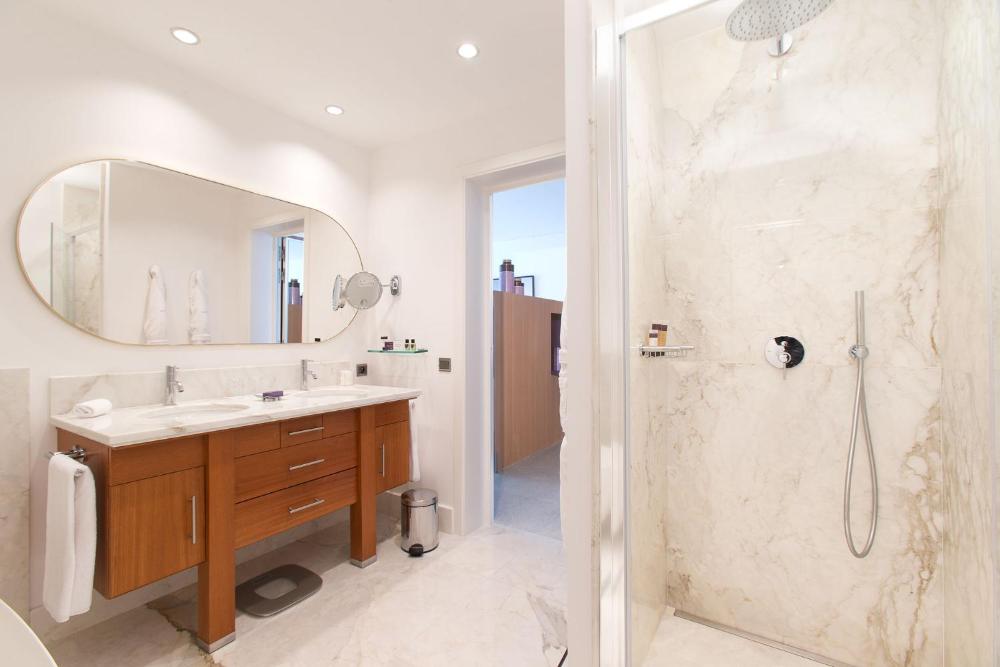 De kamers, suites en villa hebben airconditioning, een gemeubileerd terras met uitzicht op zee, een flatscreen-tv met satelliet- en kabelkanalen, en een kleedkamer. De eigen badkamers zijn uitgerust met een bad, een douche, een badjas, een haardroger en slippers.