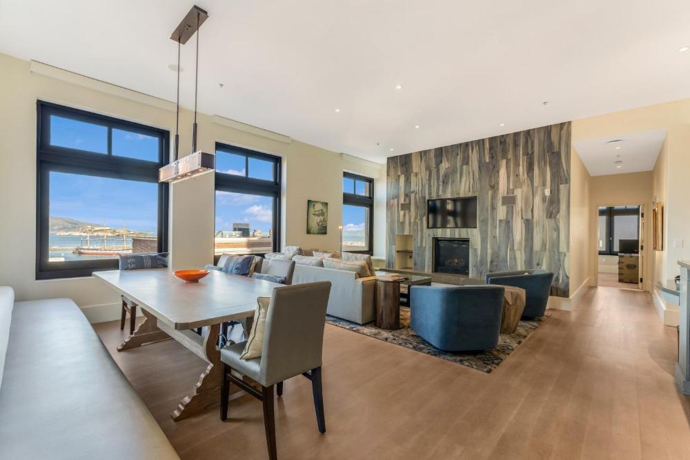 De ruime appartementen van The Fairmont Heritage Place Ghirardelli Square zijn voorzien van een open haard en een luxe entertainmentsysteem. Alle slaapkamers zijn uitgerust met een eigen badkamer met een afgesloten glazen douche. De zichtbare bakstenen muren in de appartementen bieden op natuurlijke wijze geluidsisolatie en behoren tot de oorspronkelijke gevel van Ghirardelli Square. U kunt gebruikmaken van een wasmachine en droger, weggestopt in een kast. Sommige appartementen bieden uitzicht op de baai.