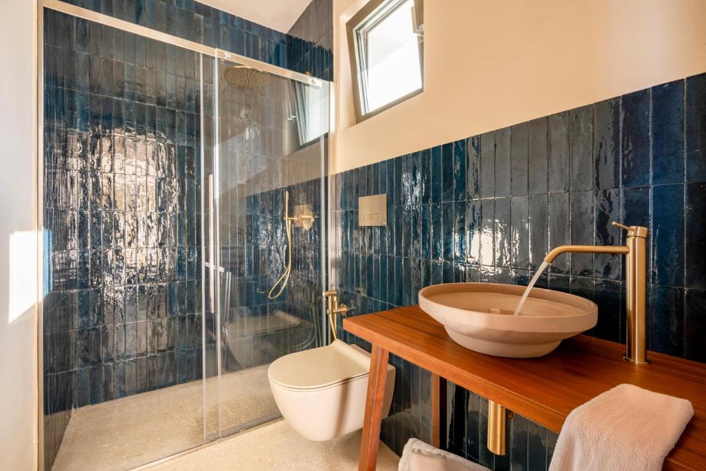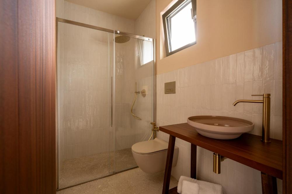 Elke unit heeft een eigen badkamer met douche en een haardroger, en ook slippers.
